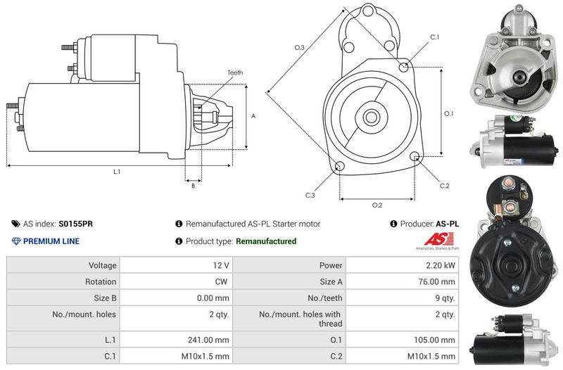 AS-PL S0155PR - Motor de arranque - Remanufacturado AS