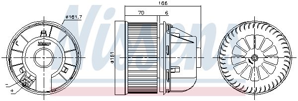Vehículo con dirección a la izquierda / derecha: para vehic. dirección izquierda Equipamiento de vehículo: para vehículos sin aire acondicionado Vehículo con dirección a la izquierda / derecha: para vehic. dirección izquierda Equipamiento de vehículo: para vehículos sin climatizador automático Forma del enchufe: rectangular Diámetro [mm]: 161 Material: Plástico Número de enchufes de contacto: 2 Modelo de conector: Macho Potencia [W]: 288 Sentido de giro: Sentido de giro a la derecha (horario) Tensión [V]: 12 Artículo complementario/Información complementaria: sin unidad de control